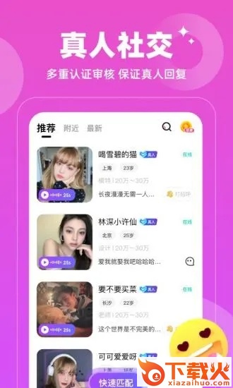- 实名制:实名手机注册,真人语音交友,安全可靠,有保障。