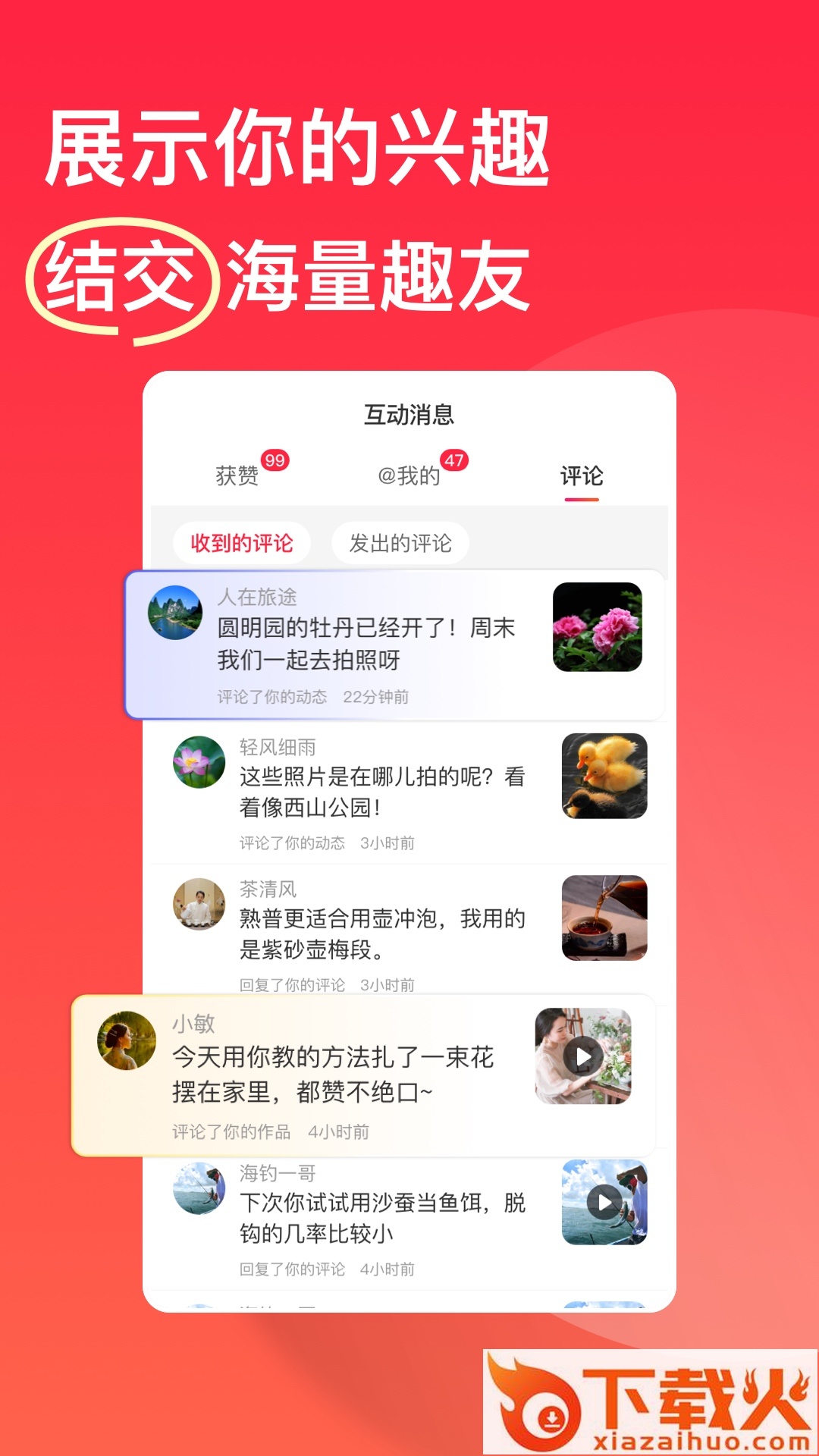 1、兴趣互动交友,展现精彩生活