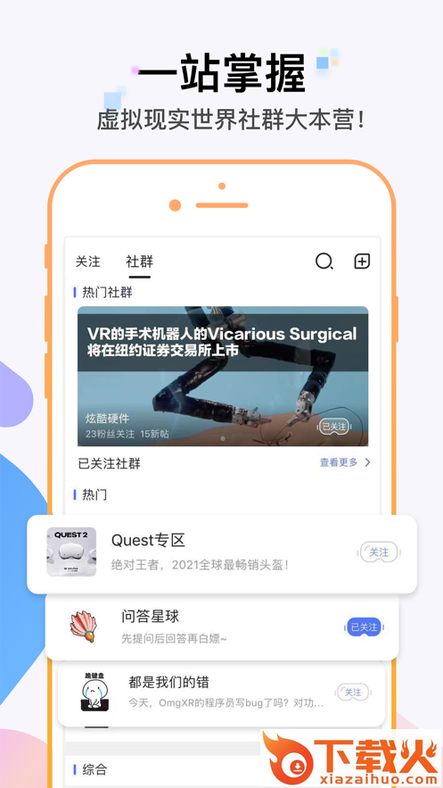 OmgXRapp,专为虚拟现实玩家打造的社群社交软件,汇聚最新XR咨讯,分享各种vr相关内容,认识志趣相投好友,探讨感兴趣话题,随时随地在线交友,沟通更便捷。...