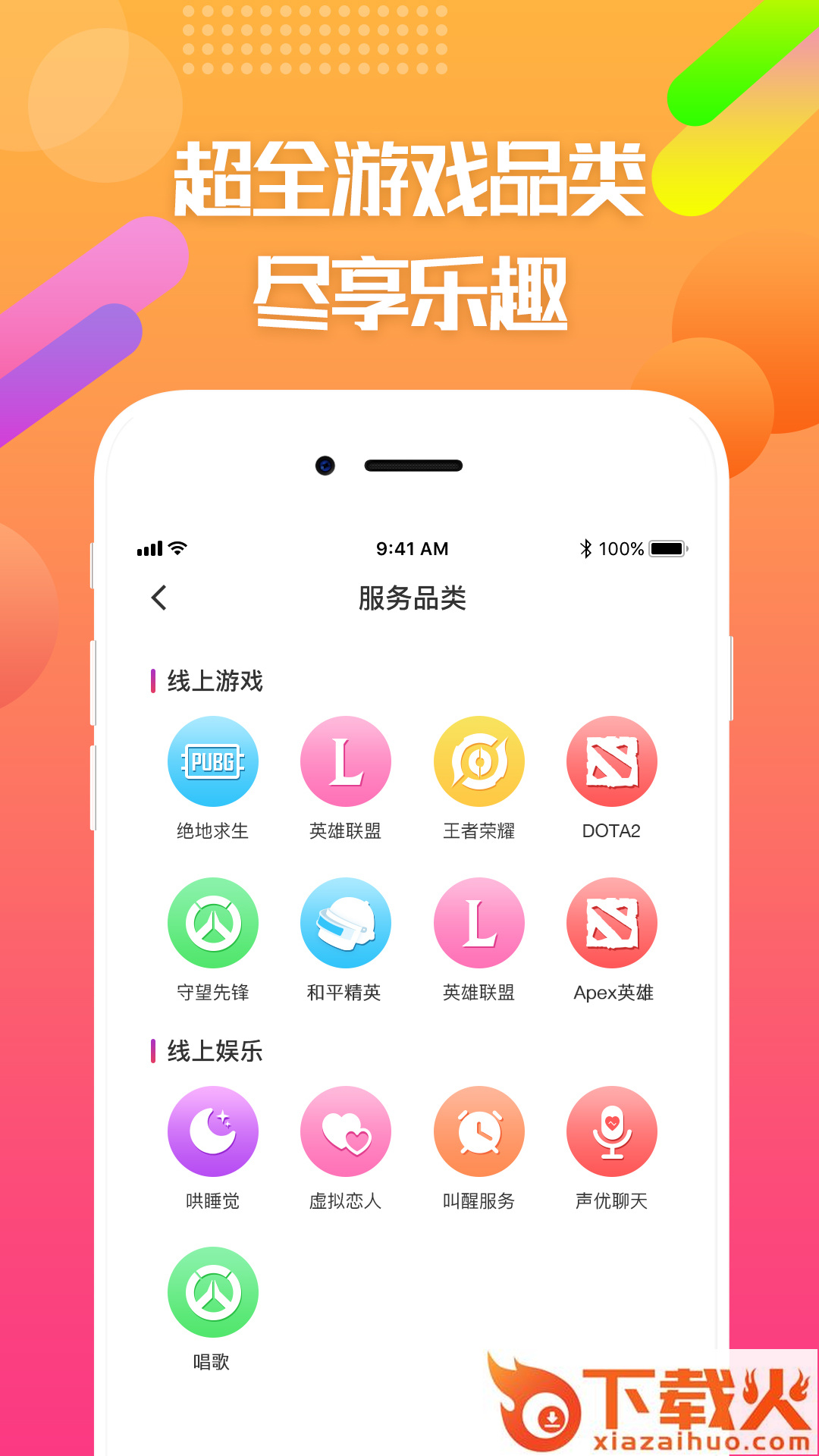 覆盖国内外热门游戏,包括LOL、绝地求生、荣耀、和平精英、Apex英雄、Dota2、守望先锋、第五人格、CS:go等数十款游戏陪练项目,更包含线上娱乐项目,唱歌、哄睡、叫醒、语音聊天、情感咨询等,让你畅选,找到属于你的甜蜜定制。