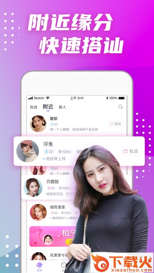 【陌生推荐】海量真实用户资料,严苛的审核流程,保证用户信息真实可靠。高质量人群约会聚集地,你约见的TA就是真实的TA。附近交友面对面语音畅聊想怎么玩就怎么玩,24小时附近人在线陪聊不脱机!