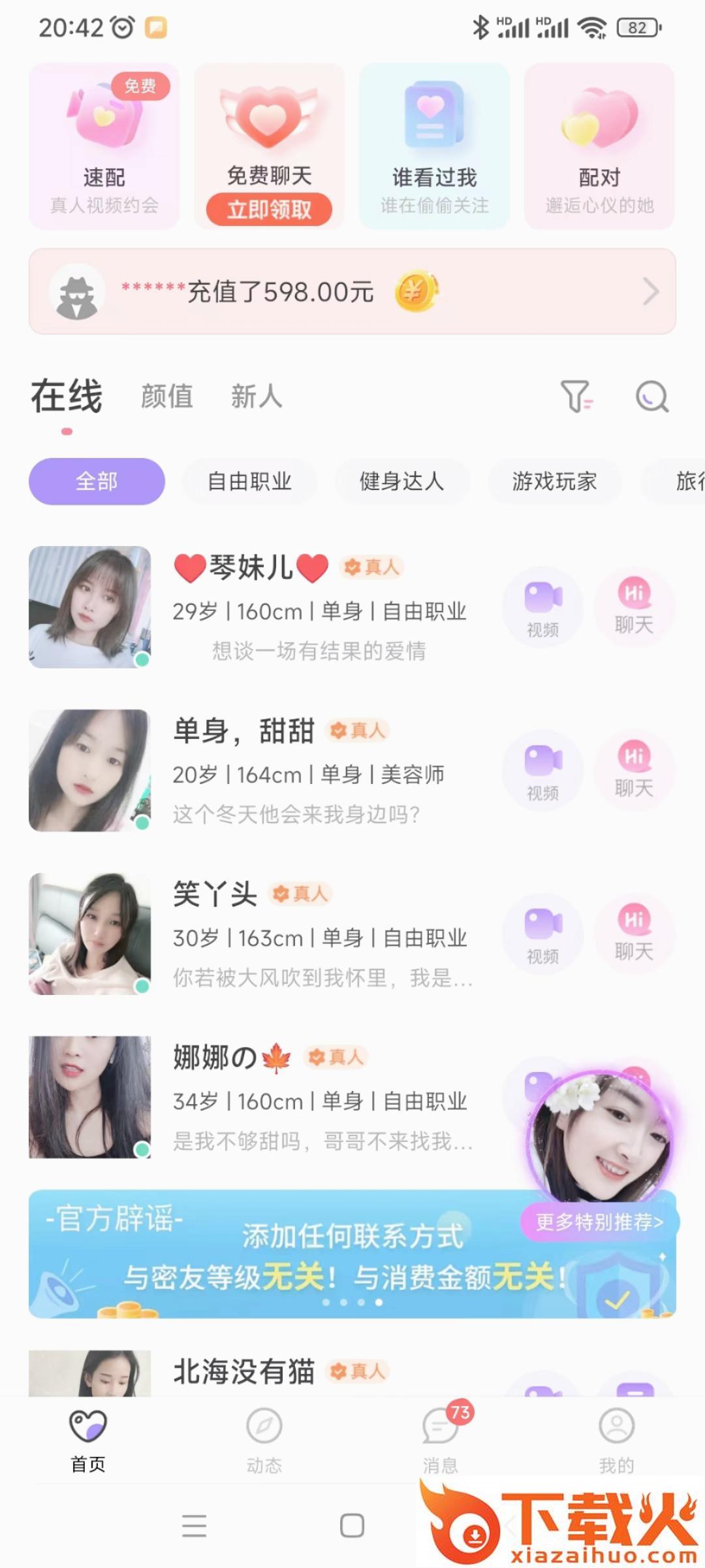 同城觅伴app,同城视频聊天交友,一键查看对方资料信息,轻松搭讪,认识身边有趣小伙伴,随时随地在线社交,为用户带来更便捷的交友体验。...