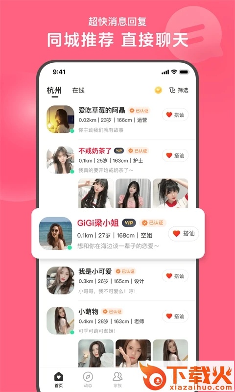 2. 在线列表:24小时为你展示当前在线的TA,从此与寂寞说再见