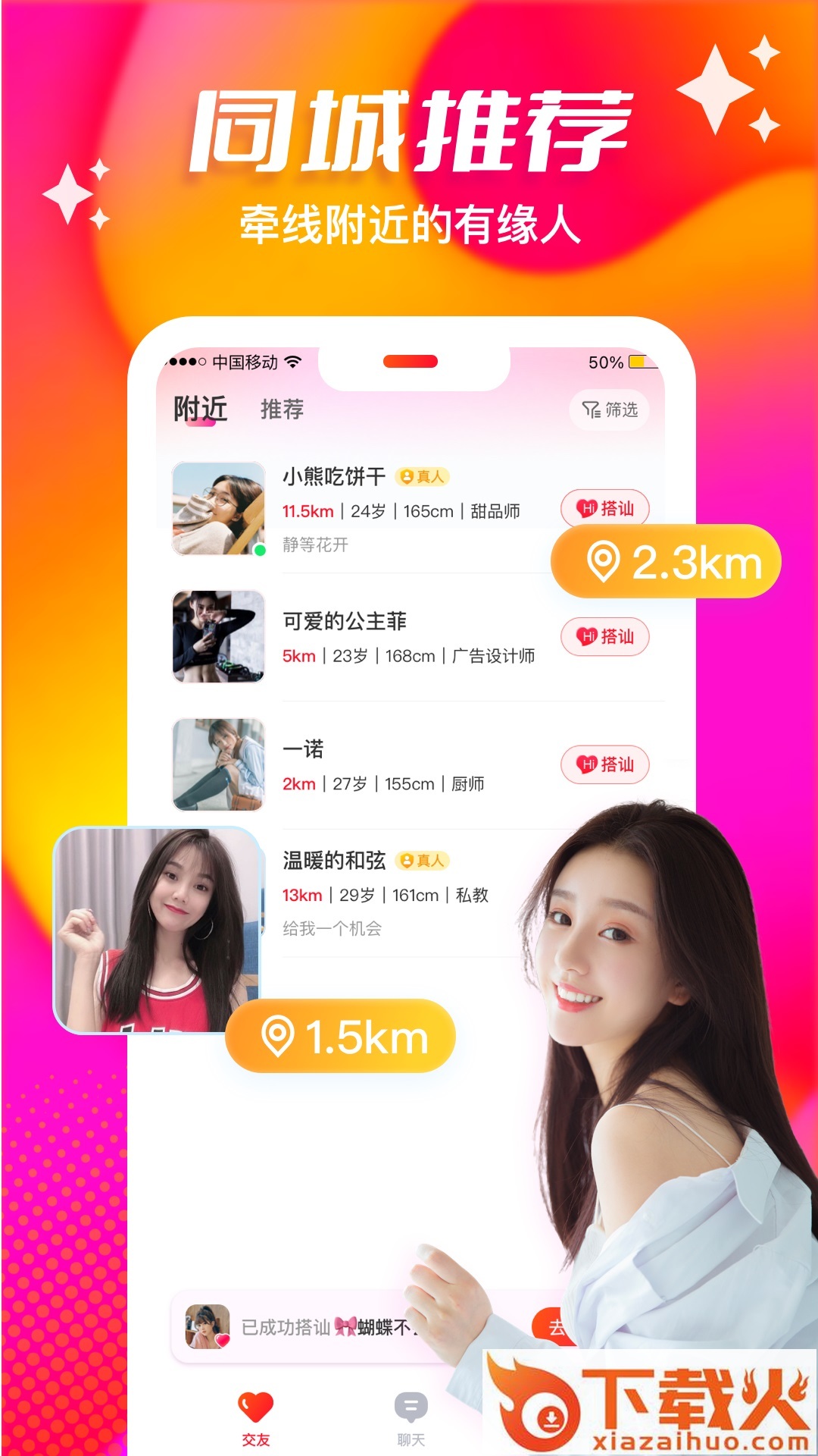心缘聊天软件下载,真实可靠的附近聊天交友软件,邂逅附近有缘人,在线沟通,轻松互动,玩法多样,认识更多有趣小伙伴,随时随地在线交友,聊天交友更简单。