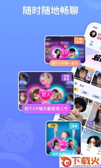 拍拍语音,一款在线互动语音交友app,在这里,你可以和各地的帅哥/美女互动游戏,培养感情,遇见心仪的玩友,即刻牵手组cp,走向爱情。