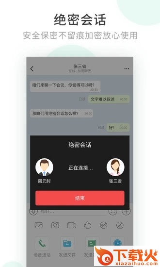4.绝密会话聊天不仅可加密,还可以自己设定时间销毁,会话结束所有聊天窗口消失,记录清除,雁过无痕。不显示用户昵称,头像等任何信息!