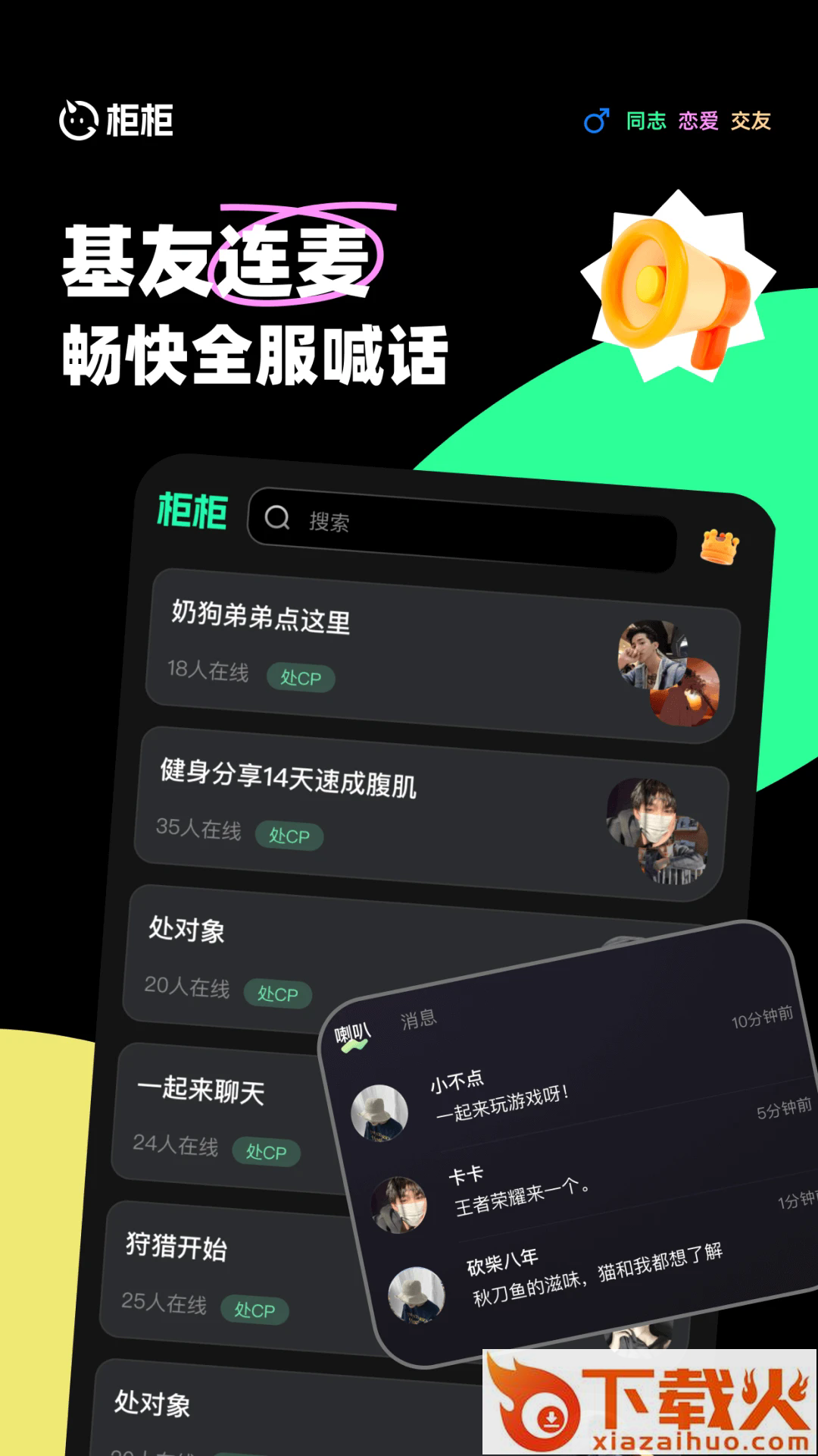 柜柜交友app,汇聚来自五湖四海的小伙伴,展示真实自我,在线互动交友,多种趣味玩法等你来。来柜柜app,随意匹配,轻松连麦,与感兴趣的对象随时畅聊,找到合适对象。