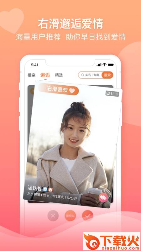 邂逅:左滑不感兴趣右滑喜欢,让您快速遇见对的人。