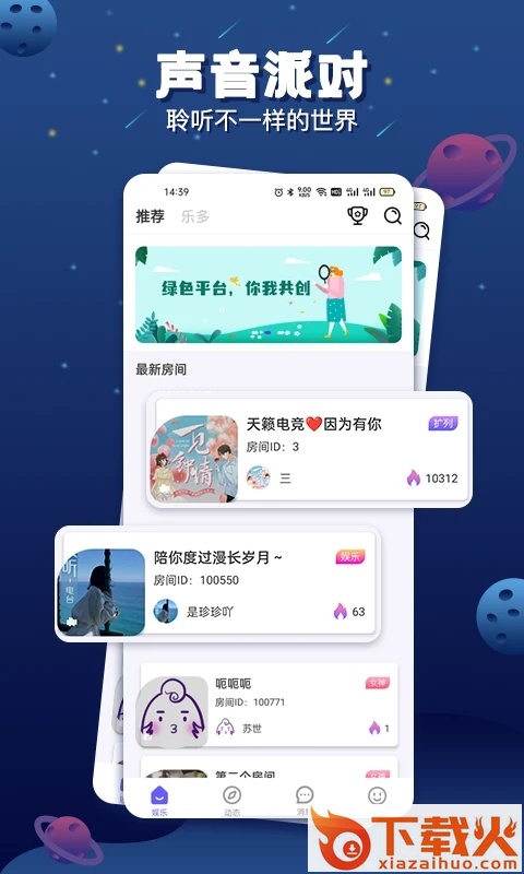 乐多语音app下载,一款主打声音交友的娱乐互动平台,来乐多语音app小伙伴们可以一键语音连麦,随时开启声音派对,扩列交友遇见更多精彩,感兴趣就来下载体验。