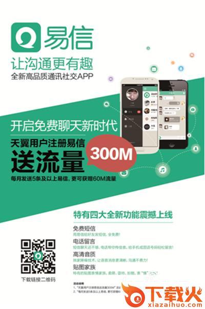 易信宣布:注册即得中国电信全国流量300M,流量当月赠送,有效期30天,每月活跃用户(发送5条以上消息),次月即可获赠60M全国流量,以上流量不限易信使用。