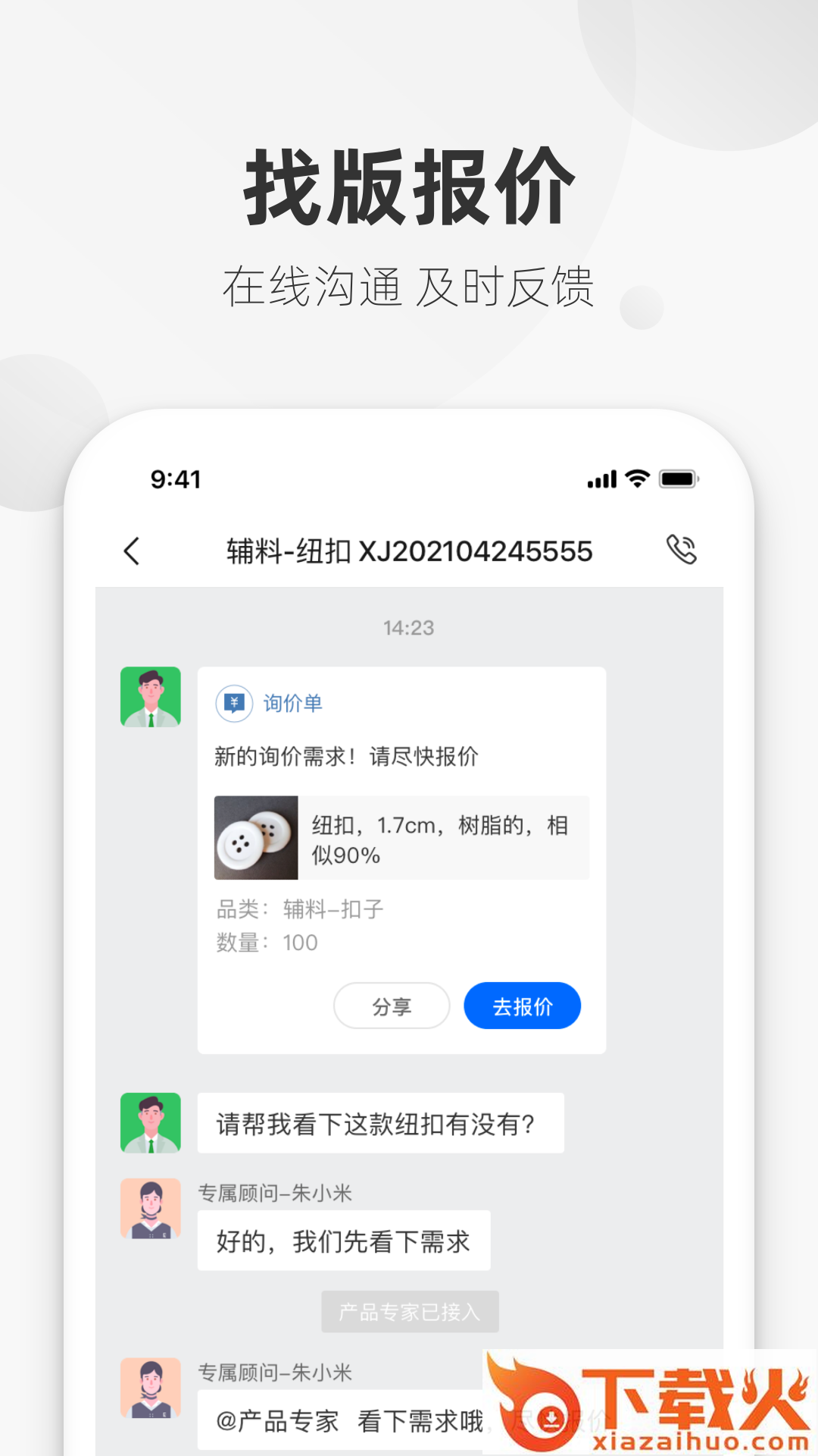 辅料易专家版是一款为服装辅料行业产品专家提供的专业的在线接单app。