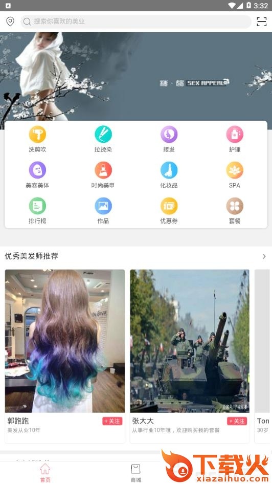 洗剪吹,拉烫染,接发,护理,美容美体,时尚美甲,化妆品,SPA,优惠券。