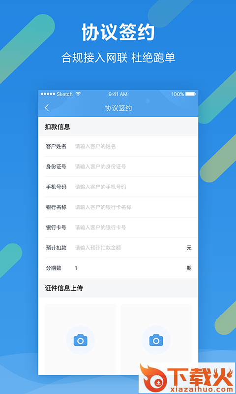 1.签约需要上传客户手持协议和身份证.