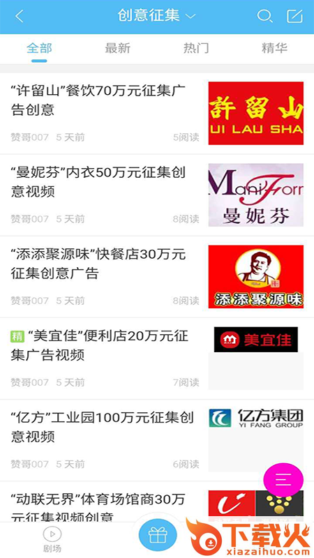 大赞广告征集app,手机创意广告征集、展示平台,汇聚丰富广告剧征集招标信息,轻松合作,高效交流,随时浏览创意广告,获取最新广告征集信息,带给创意者更多赚钱机会。...