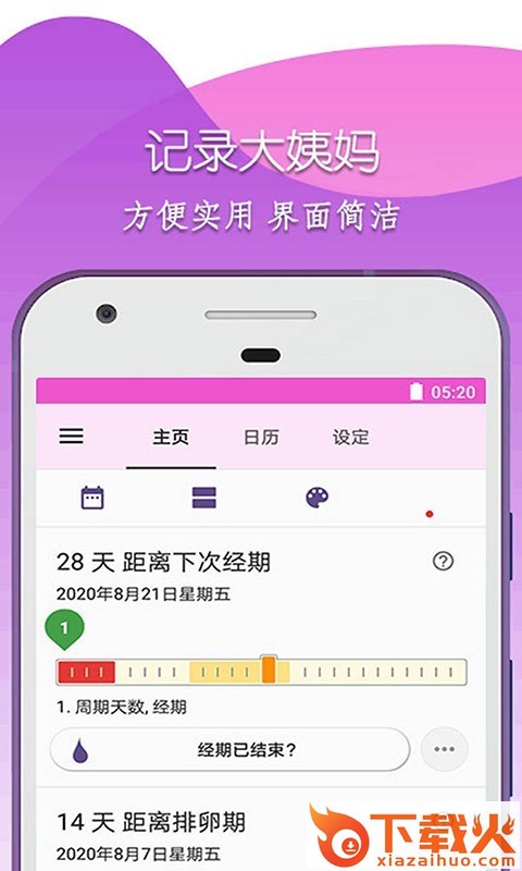 【日历标记】日历标注经期日子,彩色高亮显示,日历还能记录心情日记