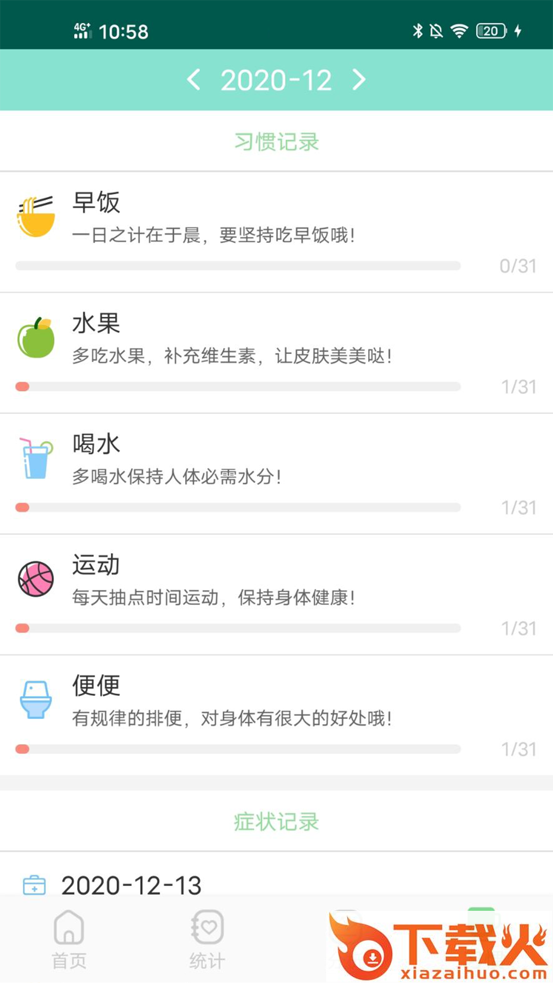 简单操作:记录你的经期时间、经期痛经、流量问题,爱爱情况,情绪波动等问题。