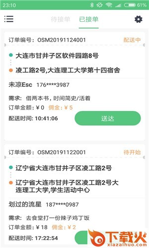 2.接受并处理用户外卖订单, 随时随地接单,处理催单。