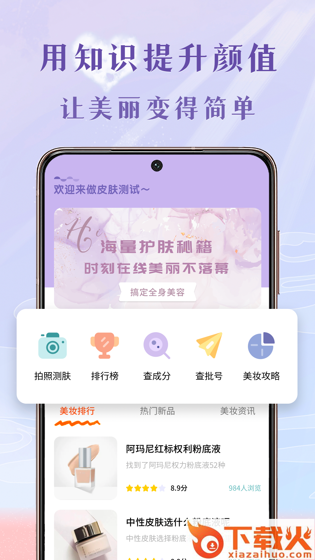 皮肤测试app,一键测试个人肤质,轻松管理个人肌肤,功能齐全,支持护肤品成分分析、美妆排行查看、肌肤问题处理等功能,学习更多肌肤护理知识,掌握更多美妆技巧。
