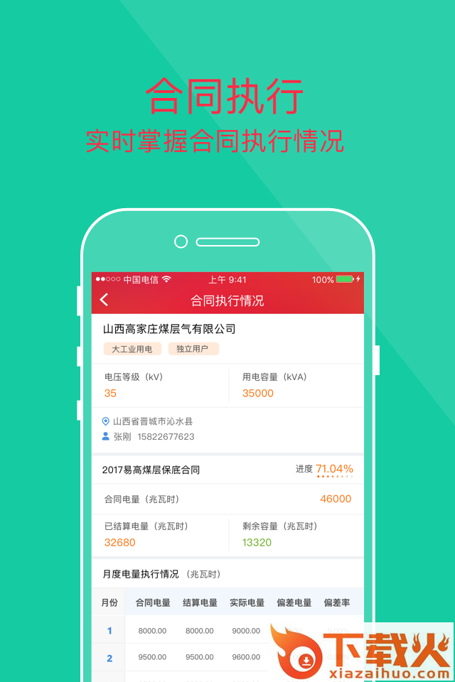客户用电量实时上报及查看、用电量与合同电量对比,