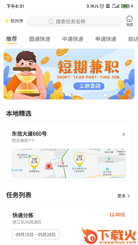 主要针对线下零时工进行工作推荐,主要发布岗位如:快递公司,果农等大型人力需求企业。