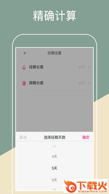 通过提供经期的周期间隔和长度,自动科学定位出安全期、危险期和月经期。