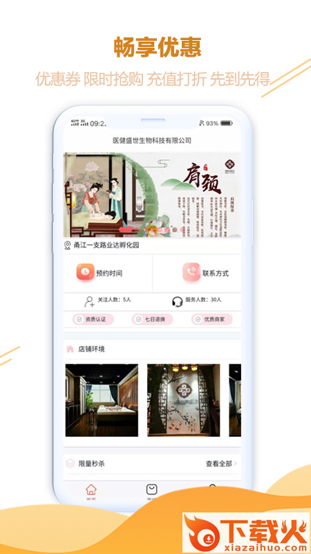 医健盛世app,专为医健盛世用户打造的服务平台。提供线下门店一站式预定服务,线上各种优惠券、限时抢购、充值打折、先到先得,最高3折优惠,需要的朋友快来下载吧。