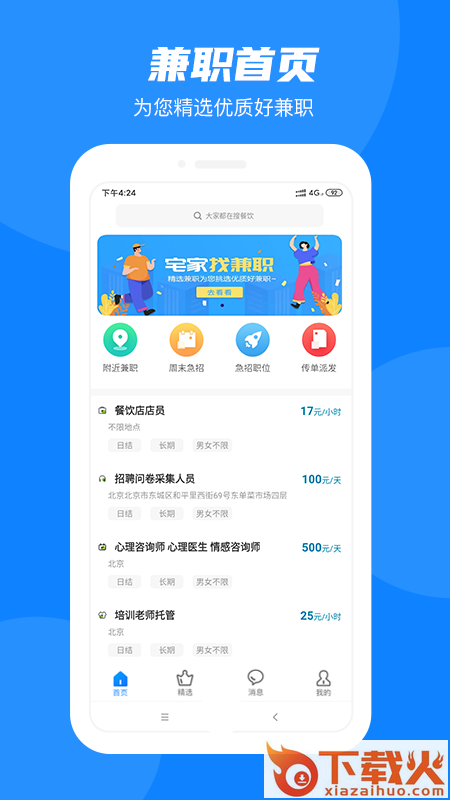 同城兼职下载安卓版,为广大时间自由的小伙伴们提供海量兼职信息,同城兼职app定位精选优质好兼职,让大家就近找工作,更加方便更加靠谱,欢迎下载。
