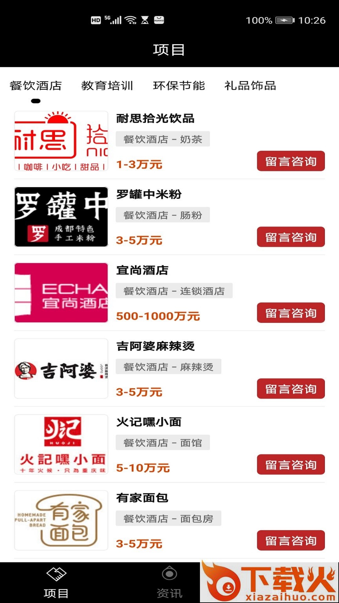 合作项目一般与餐饮,教育,环保等行业挂钩。