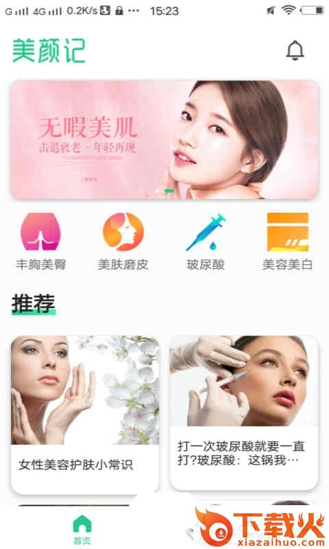 美颜记app,提供了丰胸美臀、美服磨皮、破尿酸以及美容美白等知识性服务,带你了解美容中的各类手段及问题,让变美变成一种靠谱的事情。