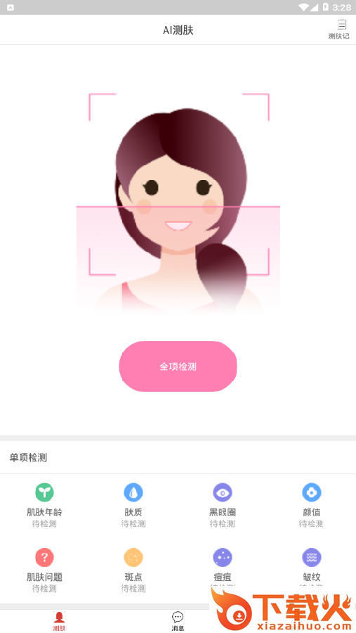 3、看看你的肤质怎么样,一键轻松检测,简单快速测试自己的肤质情况;
