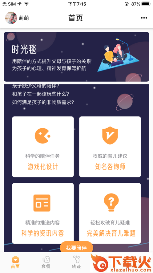 通过专业咨询师团队倾心打造针对不同特质的亲子陪伴套餐,用户可以选择任意喜爱套餐进行打卡陪伴任务;