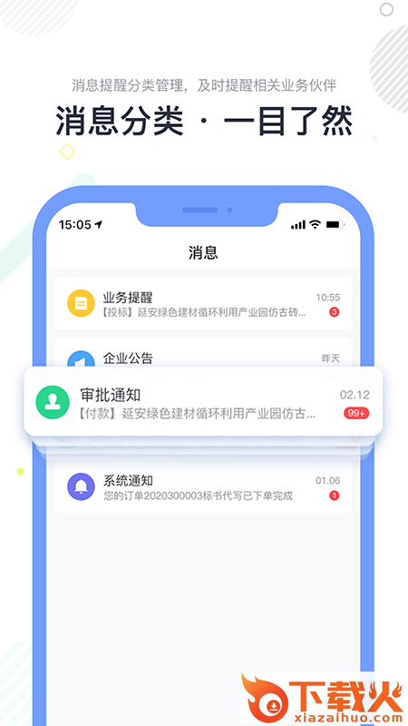消息提醒分类管理,及时提醒相关业务伙伴