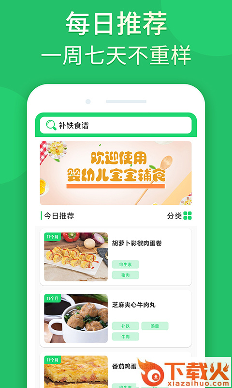 2.每日进行辅食推荐,七天各不同
