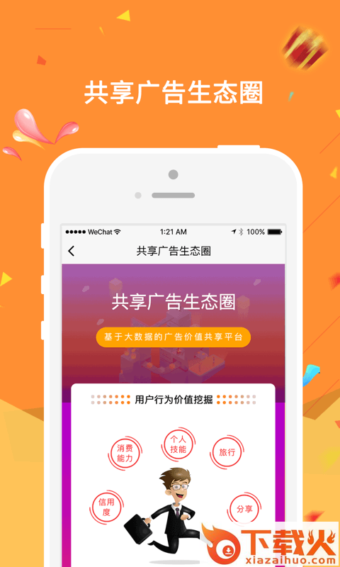 广告豆服务企业,促进企业发展。同时行为价值回归用户,促进用户获得大数据价值,形成越喜互动生态。