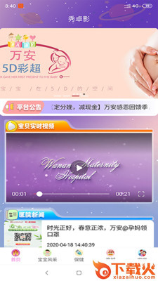 2.在首页中,大家可以看到宝宝的风采视频,可以自动拍摄记录,也可以了解一些医院新闻,省心便捷;