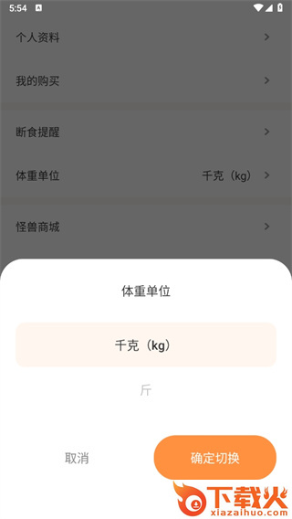 3、接着来到设置的页面中可以看到有我的购买、体重单位、怪兽商城等,我们点击【体重单位】;