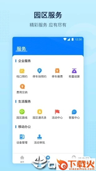 平台提供货车进场预约,生活缴费、活动中心等园区服务,充分整合园区线下资源,