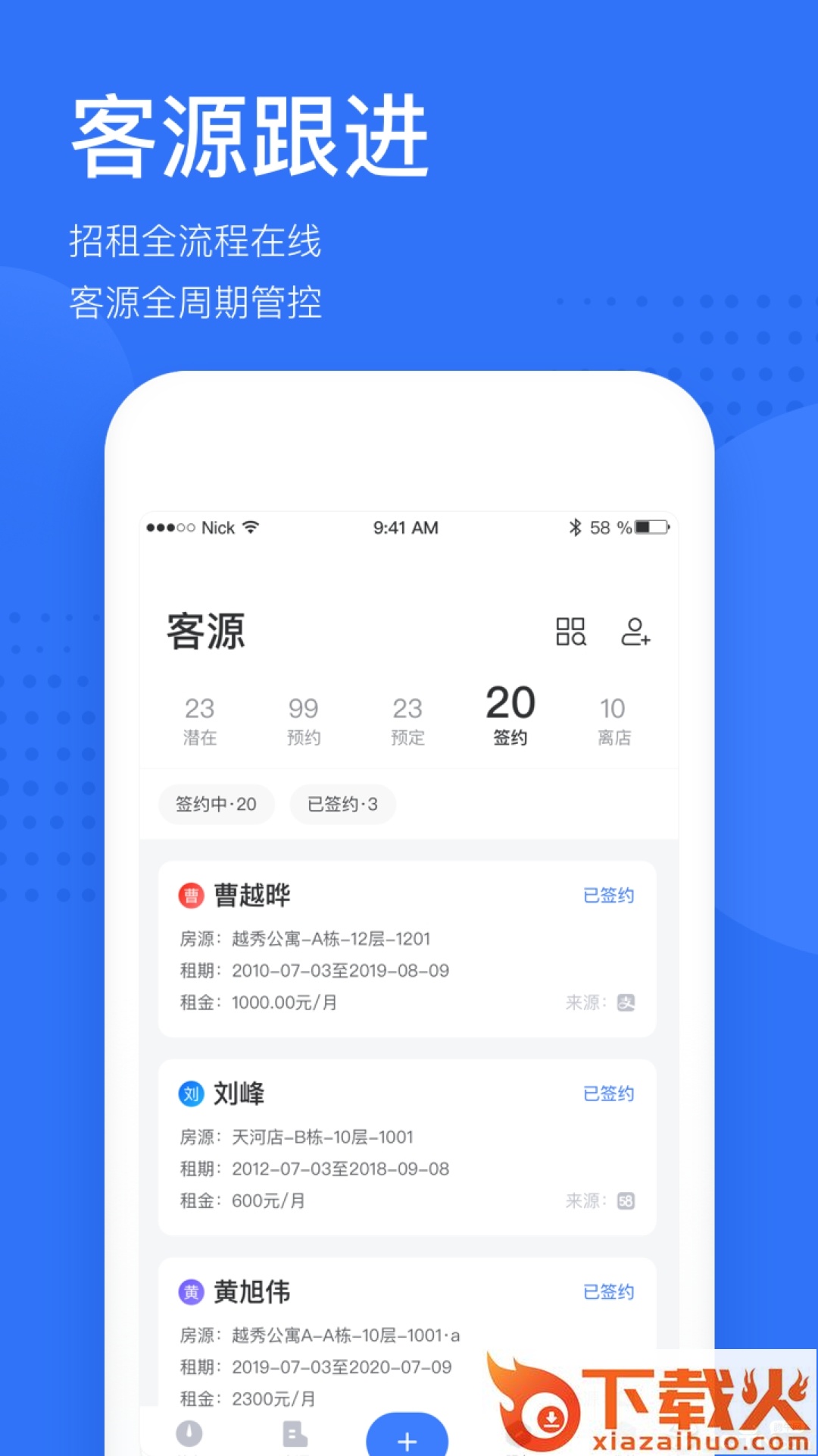 - 支持待办提醒、客源跟进、掌上租控、预定签约、入住退房、移动验房、移动审批、财务管理等,随时随地连接租客;