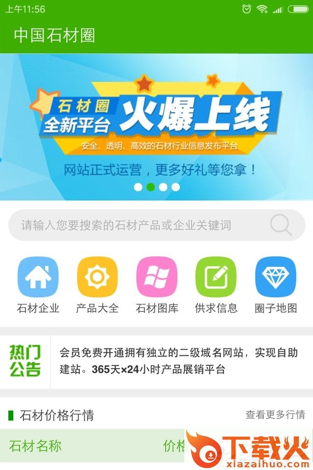 中国石材圈是一款专门为石材行业打造的线上交易app,有了它你可以更全面的了解到石材的最新市场行情,还有最新的石材资讯等各种方面的信息。中国石材圈app你值得拥有!...
