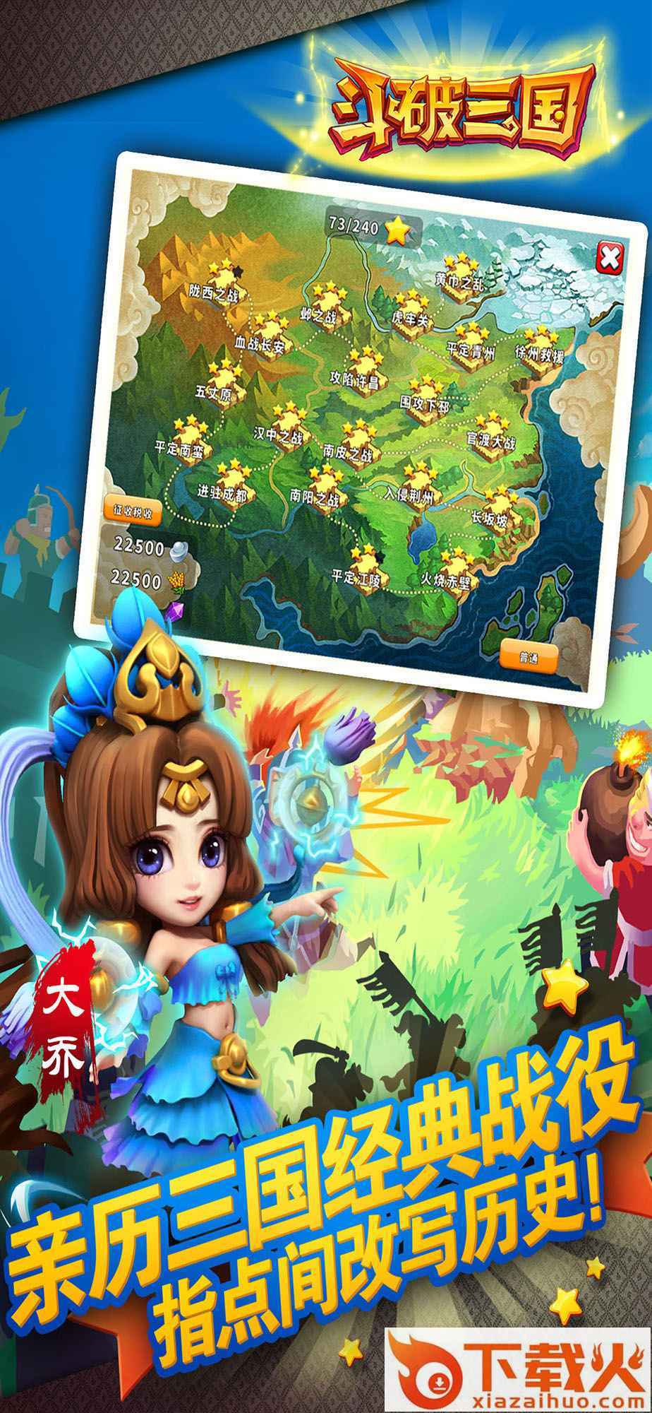 斗破三国为玩家们带来一个怀旧向的三国卡牌战斗场景,打城池,抢貂蝉,和朋友敌人一起参与三国国战当中,三国名将都以卡牌的方式收集和培养,完完全全还原经典斗三国玩法,一定不要错过。...