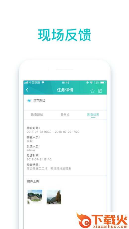 蛙鸣巡查app基于监测数据点位告警信息、插值计算网格异常,分时段统计热点网格,发布勘查任务,精准定位勘查点,现场取证上传勘查结果,形成污染溯源闭环。