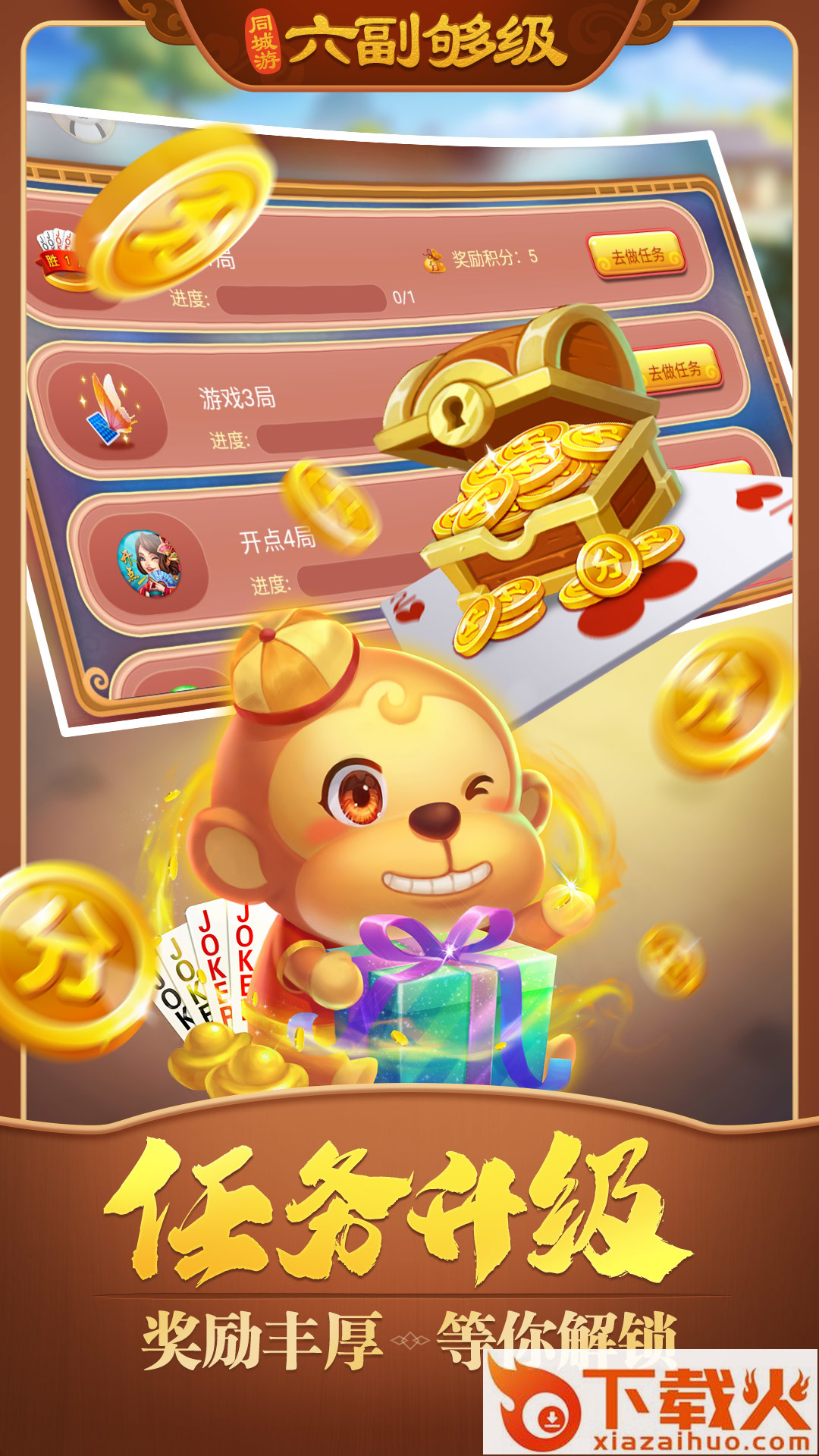 同城游六副够级是山东地区非常流行的特色够级游戏,主打的就是万人在线一秒开局的经典体验。够级算是普及度极高的一款卡牌玩法了,这里有一流的体验,任务升级超带劲,还有丰富奖励等你解锁哦。