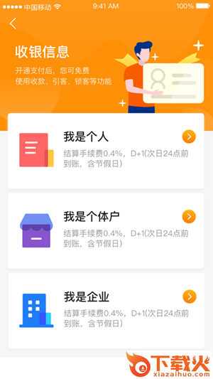 付钱啦商家APP,帮助商家更好的营销收款;我是个人,结算手续费0.4%,D+1(次日24点前到账,含节假日);我是个体户,结算手续费0.4%,D+1(次日24点前到账,含节假日);我是企业,结算手续费0.4%,D+1(次日24点前到账,含节假日)。