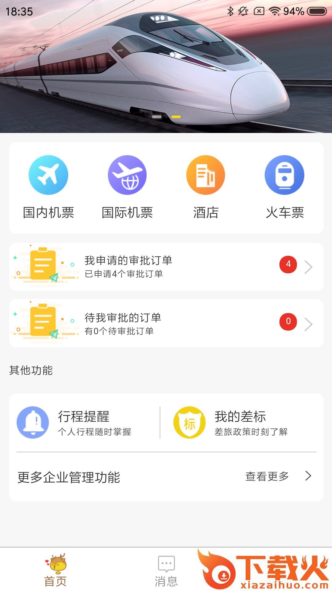 行程提醒:支持查看提醒消息,系统推送最新行程申请信息;