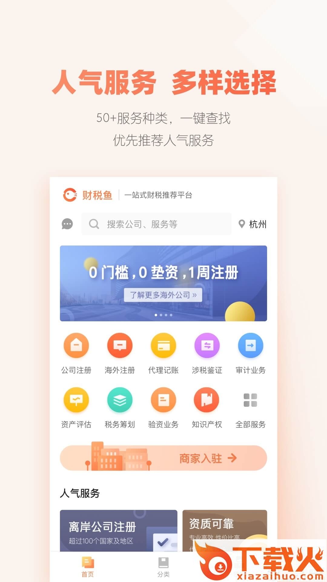 商家的服务主要包括财税咨询,公司注册,代理记账,税务申报,知识产权,工程咨询,资产评估,人力资源等相关服务。