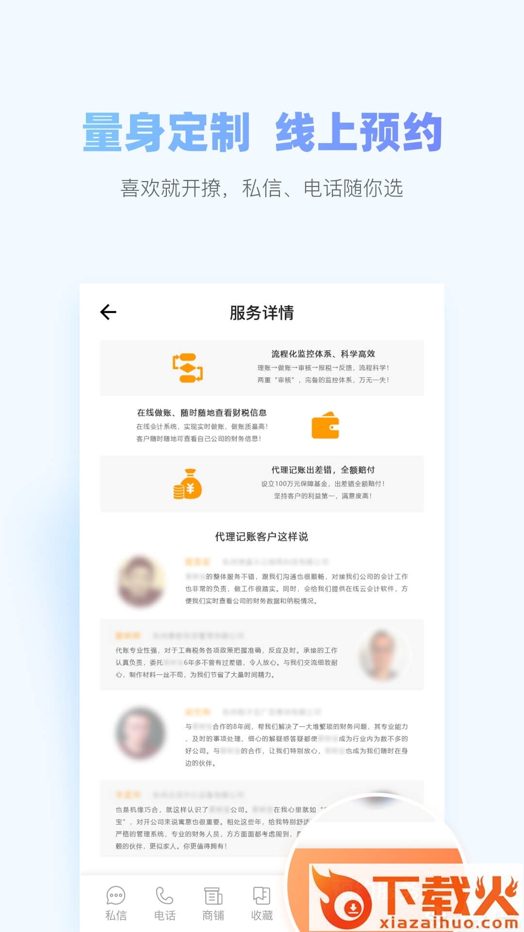 平台提供用户与商家一对一线上交流服务,让用户与商家零距离接触,轻松解决财税问题。