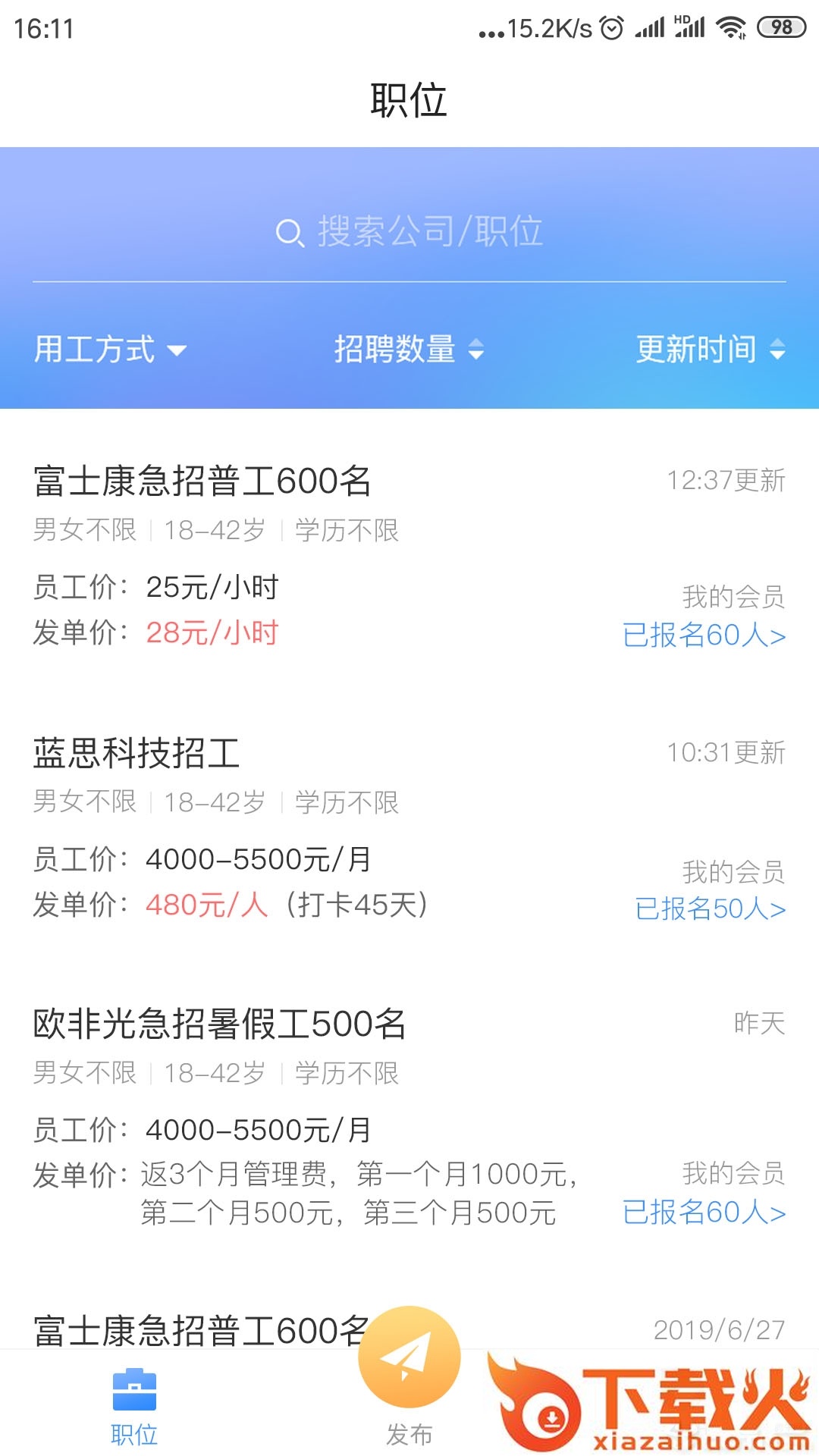 好工网APP是一款针对蓝领和相关服务机构的手机软件!由深圳市猎狼天下网络科技有限公司研发运营,致力于帮助用户解决“雇主企业招工难”、“劳务公司管理难”、“蓝领人才寻工难”三大难题,并提供标准化的业务流程,和完善的信用体系。