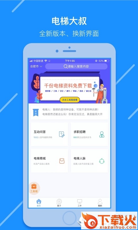 电梯大叔app,焕然一新,全新改版,界面改头换面;新闻、问答、职场、学堂、大咖、人脉,让工作更有趣;新增人脉中心,寻找新的合作伙伴。