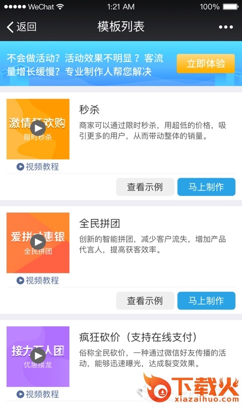为商家朋友提供了砍价、拼团、投票、抽奖、报名等丰富的微信营销玩法。