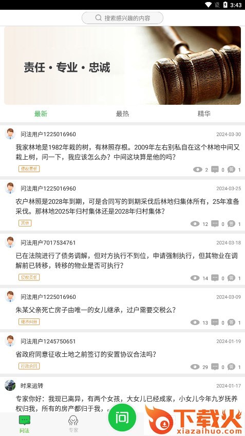 掌上问法app,专为中小微企业打造的法律顾问,提供大量法律知识,专业律师、专家云集,在线解决你的法律问题,让法律咨询、问答更便捷、更高效。